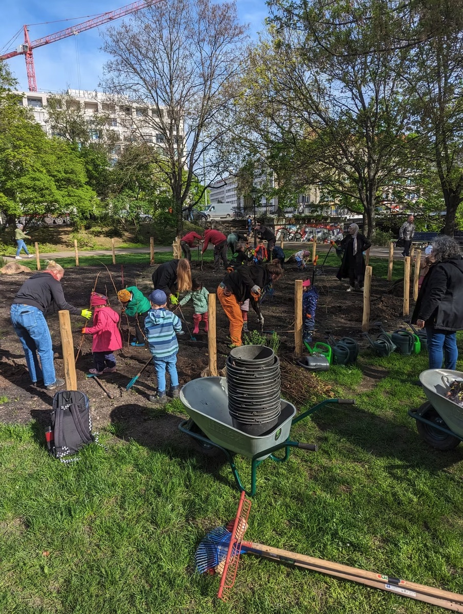 Gemeinsam mit Kita-Kindern von Fröbel Kita und der Delphin-Werkstatt haben wir in Berlin Spittelmarkt ein richtig tolles Projekt umsetzen können. Initiiert wurde dieser Tiny Forest als Kunstprojekt des Künstlers Christof Zwiener. Es trägt den Titel Gertraudenhain.