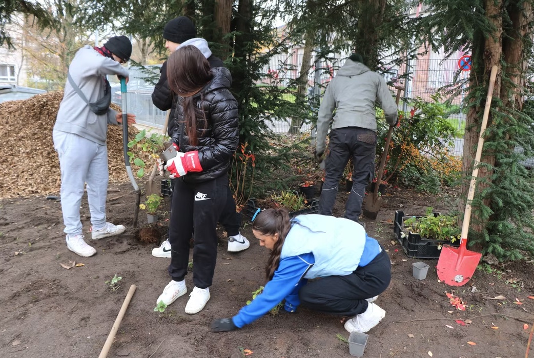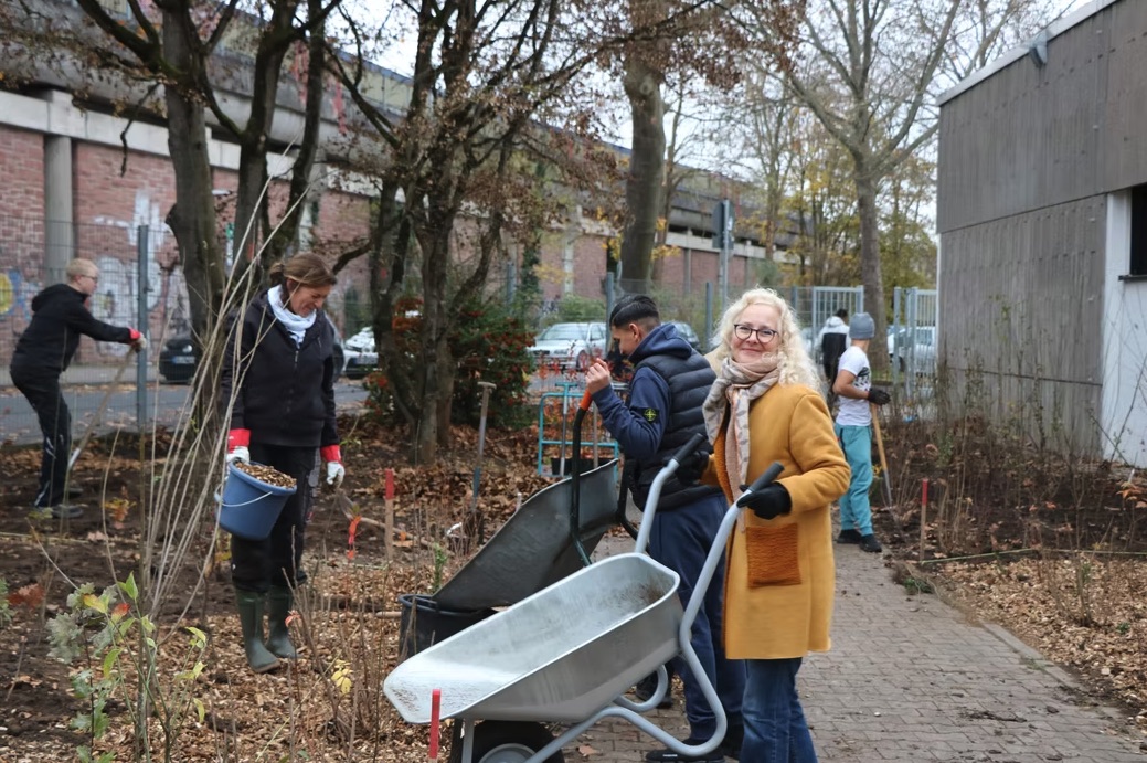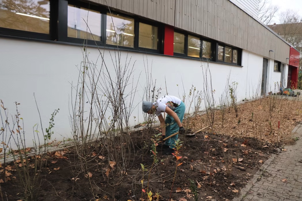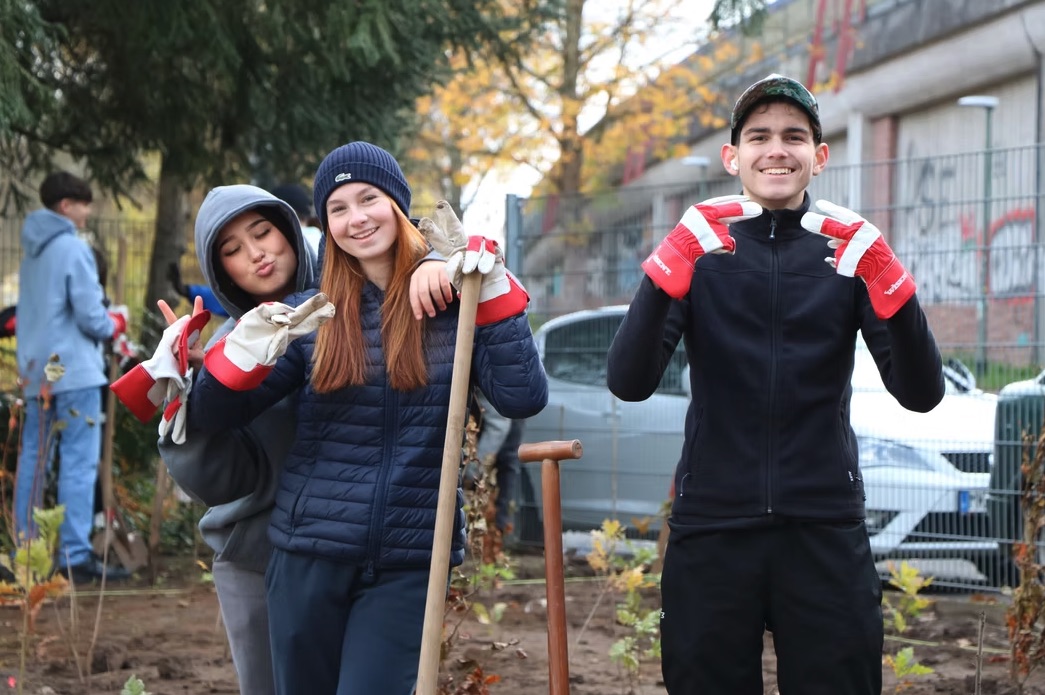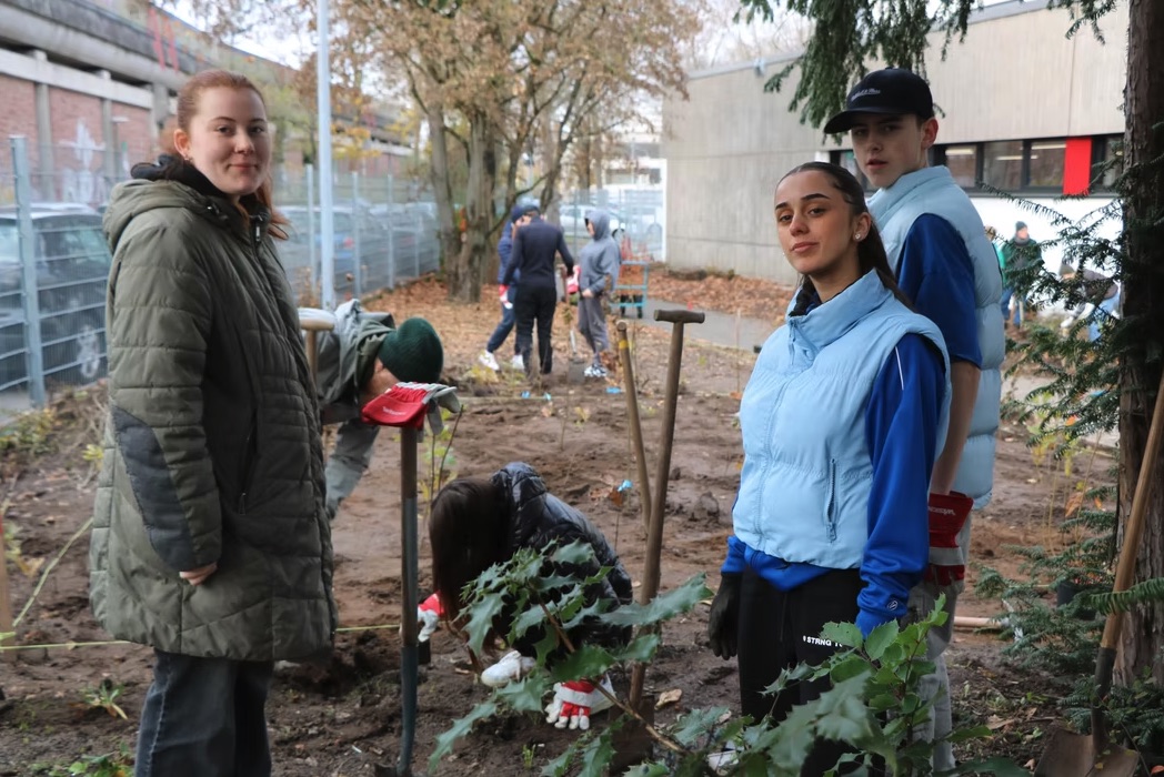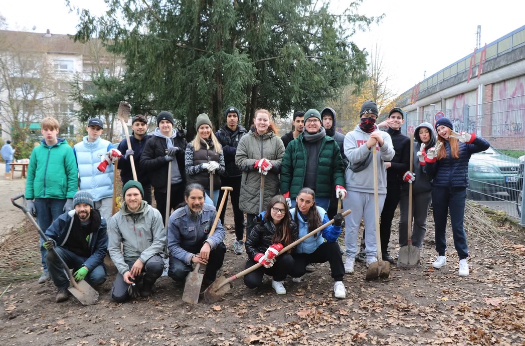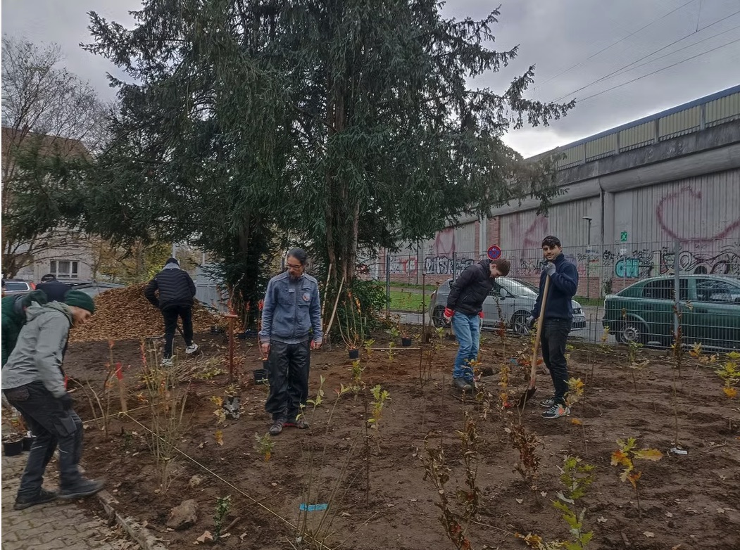 An der Ludwig-Geißle-Schule in Hanau wurde am 25.11. der nächste Tiny Forest gefpalnzt. Auf 200 m² kamen insgesamt 600 Bäume, Sträucher und Bodendecker in die Erde. Im Schutze von drei großen Eiben und einer alten Linde wachsen hier nun die Bäume der nächsten Generation heran ❤️