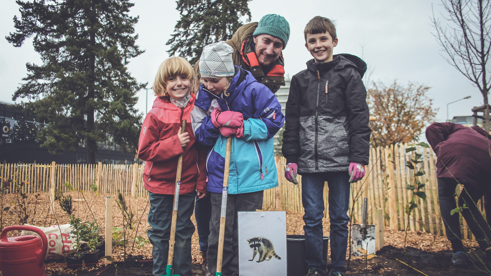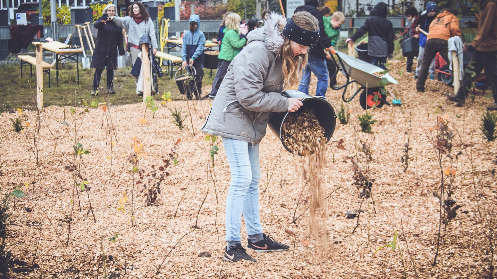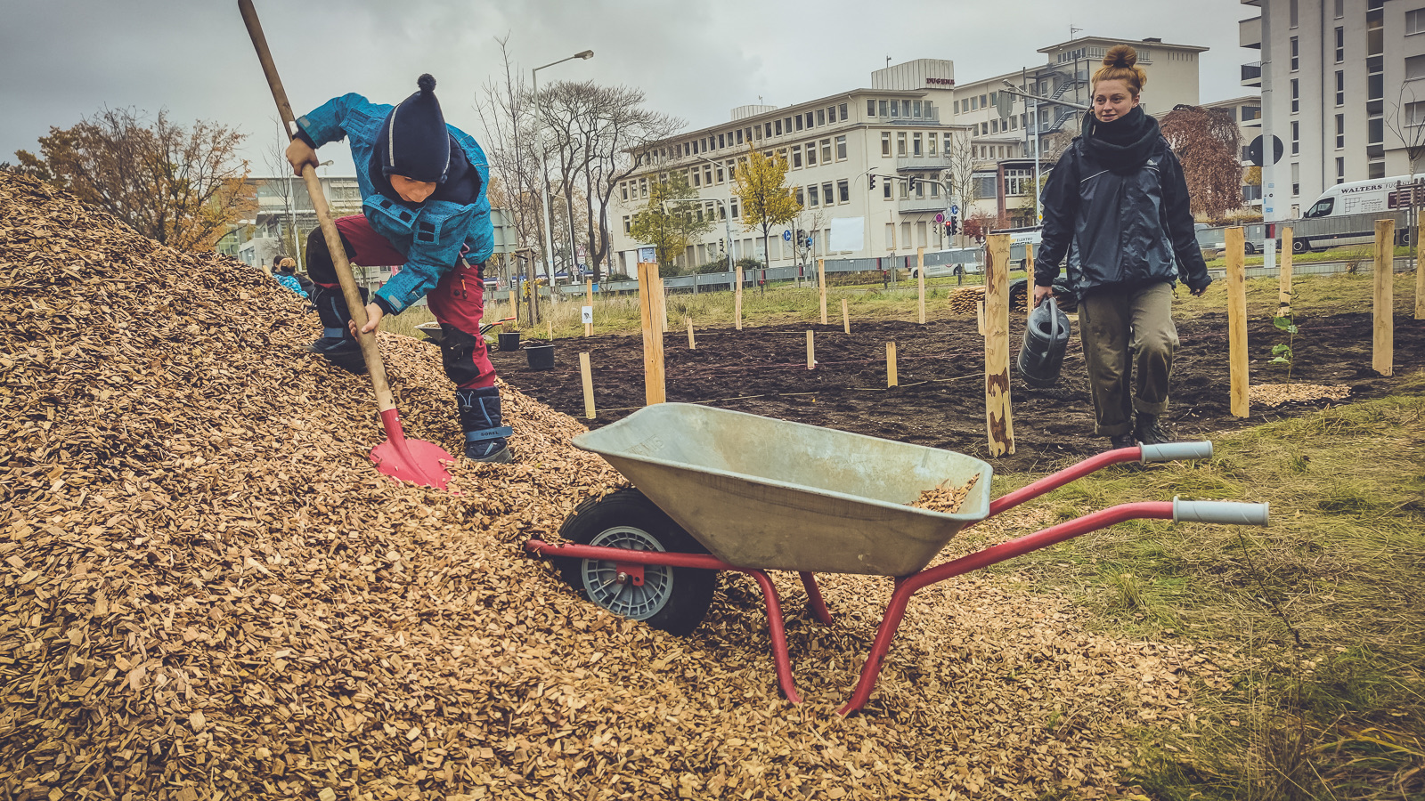 Am 16.11.2021 wurde der bislang urbanste Tiny Forest Deutschlands gepflanzt. Gemeinsam mit 60 Schülerinnen und Schülern der benachbarten Montesorri-Schule wurde auf einer 200 Quadratmeter großen Fläche mitten in Darmstadt 630 jungen Bäumen & Sträuchern ein neues zu Hause gegeben.
